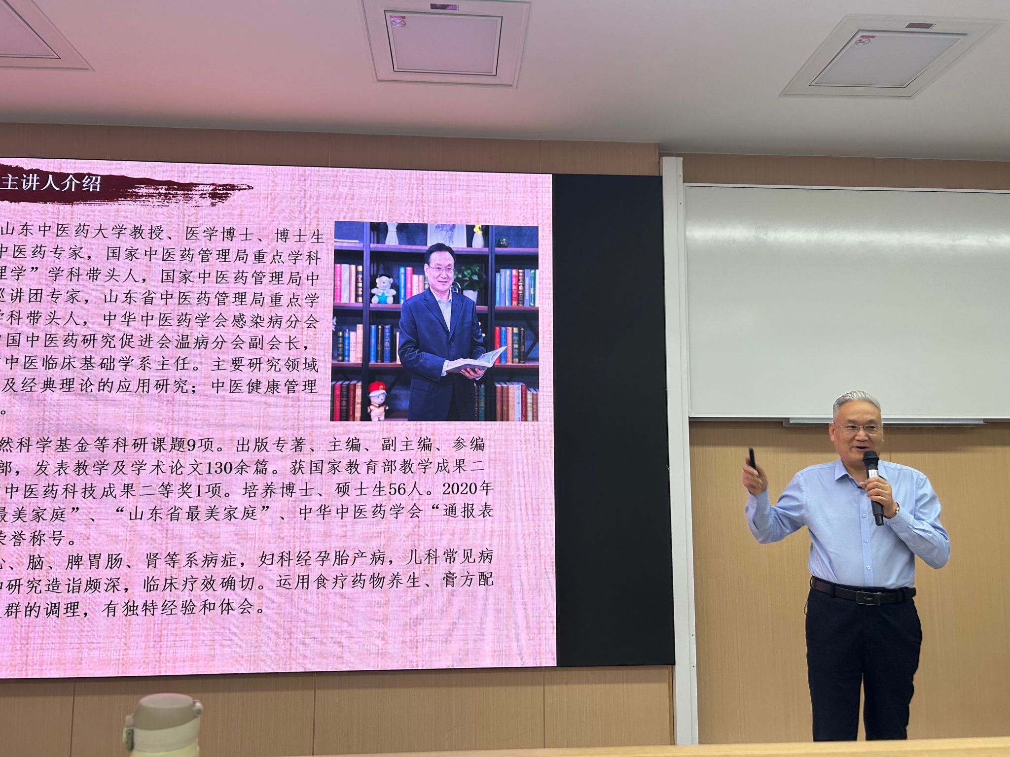 张思超教授结合原文,加上实际案例,将《温疫论》(1642年)中诸多疫病理论与当时的新冠疫病的防治相结合,体现了中医药经典的价值和魅力,像说故事般的娓娓道来,教授的真知灼见和幽默风趣的授课风格,在激励着同学们学习中医信心和决心的同时,又多了一份温情。