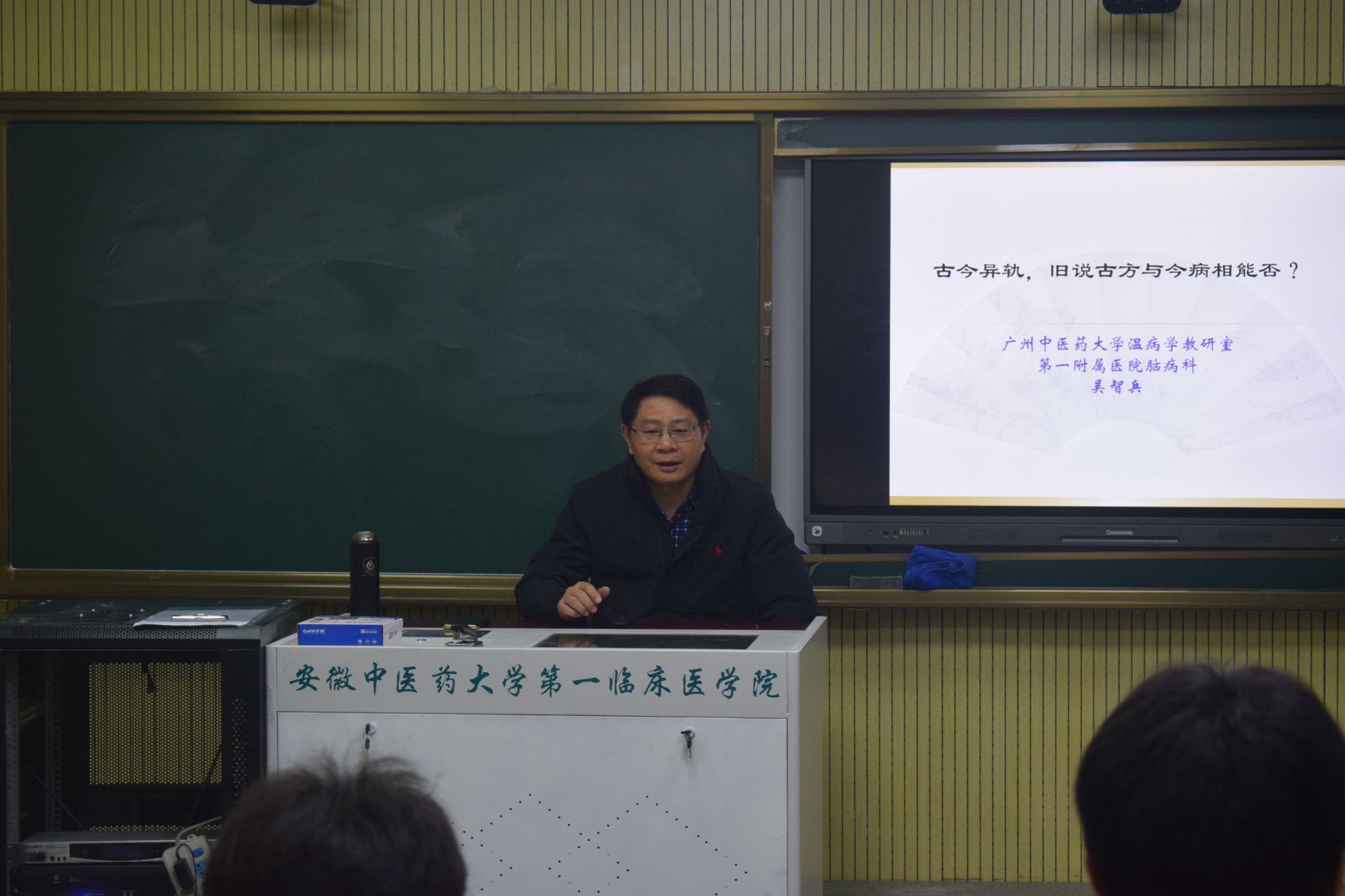 12月15日晚、16日上午,广州中医药大学博士生导师吴智兵教授接受新安书院邀请,为书院三级英才做了两场关于“温病学理法方药临床运用”的专题讲座。书院英才三级班学生、部分中医专业本科生硕士研究生、博士研究生、新安书院部分工作人员参加。新安书院代理院长方晓主持了讲座。